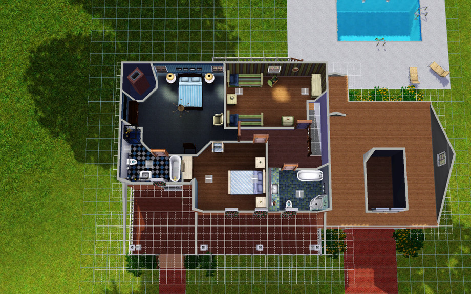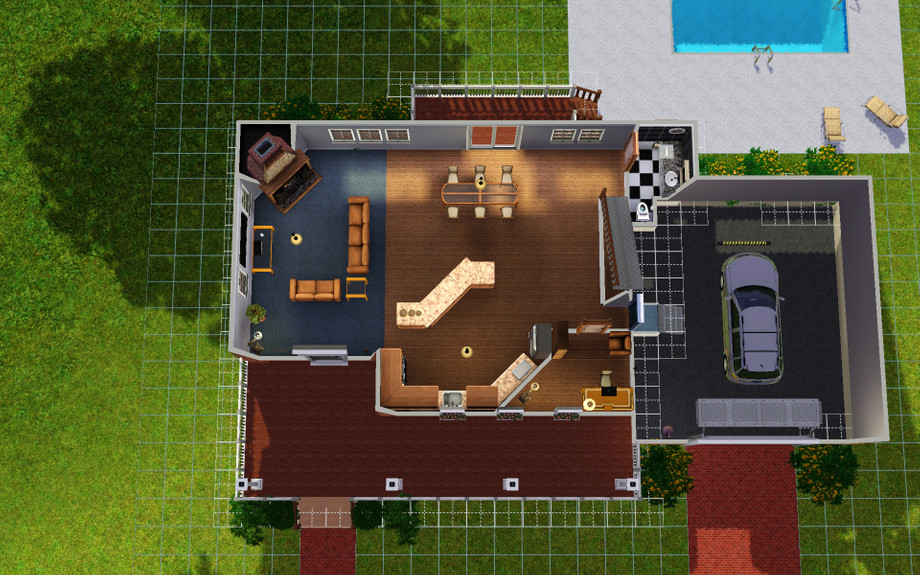 3 br, 2.5 ba. First built with custom content but it was too hard to keep track of who made what, so i turned it off and now its not exactly how i originally designed it, but its still good. Tired to make a garage using the constrainfloorelevation cheat, but i didn't work properly and now the door is in the wall. its weird. This house was a house based off of a floor plan found on globalfloorplans.com
