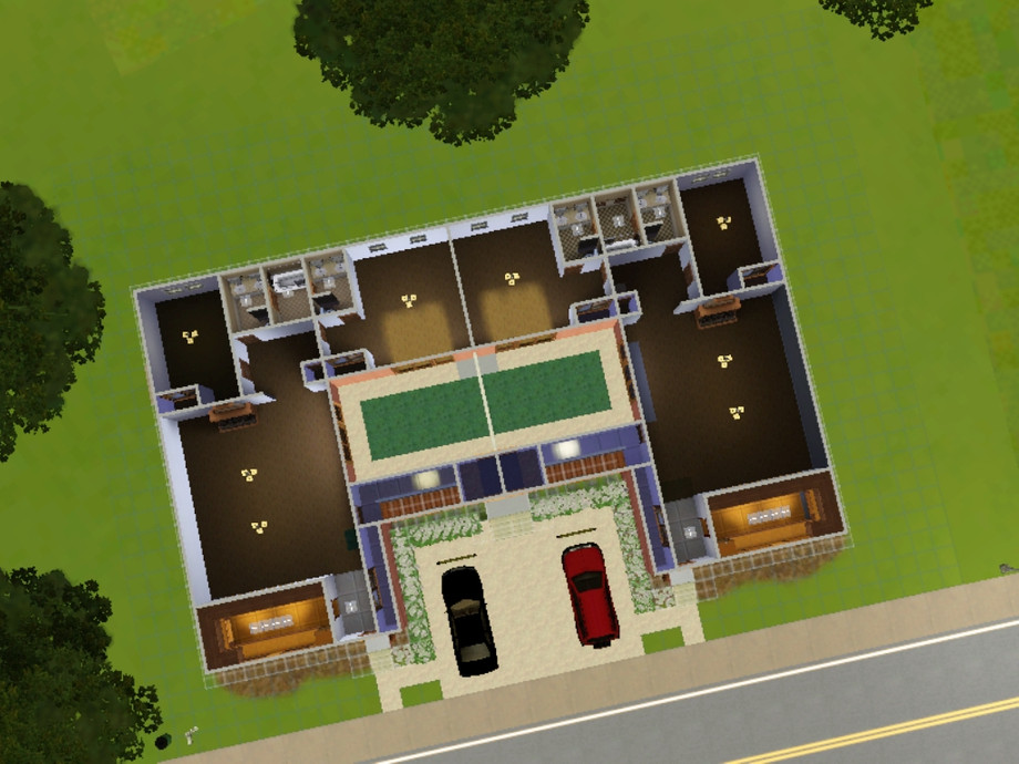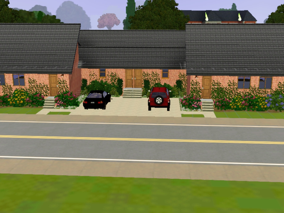 Based on a real place I once lived in (with a few minor alterations due to the constraints of building in the game), these duplexes each have their own storage shed, courtyard and full basement which I have left unfinished so you can finish it in any way you want. Put in a family room, extra bedrooms.... whatever your sims need.