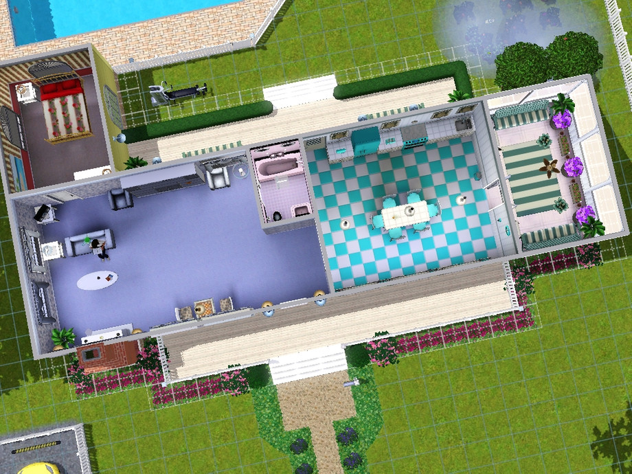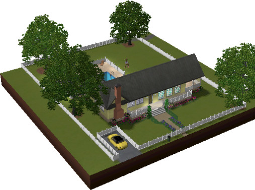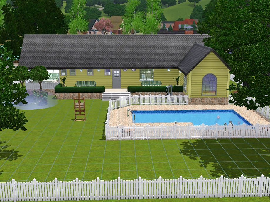 30x40 lot holds this cute 1bedroom, 1bathroom home. Includes a sun room, front and back porches, and a large living room. It has a garden and a pool for summer fun. This is a perfect house for a single person just starting out or newlyweds.
