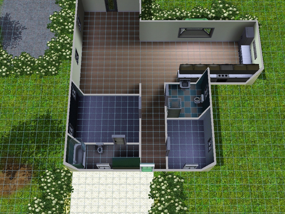 Cute little starter home for your sims. 2 bedroom, 2 bath, with open floor plan kitchen/dining/living area. Quaint bay window in dining area! Patio out back and 1 car parking spot. Sweet landscaping with daisies galore!