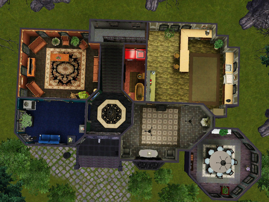 Old and dusty Dalma Noir estate is a cold and lonely place, which consists of a basement, and two floors of living space. First floor includes large kitchen, dining room, small bathroom with laundry, secret stairs to the basement, and few rooms where your sims can spend their leisure time. Second floor has three bedrooms, and two bathrooms. Note: basement is unfurnished! Enjoy!