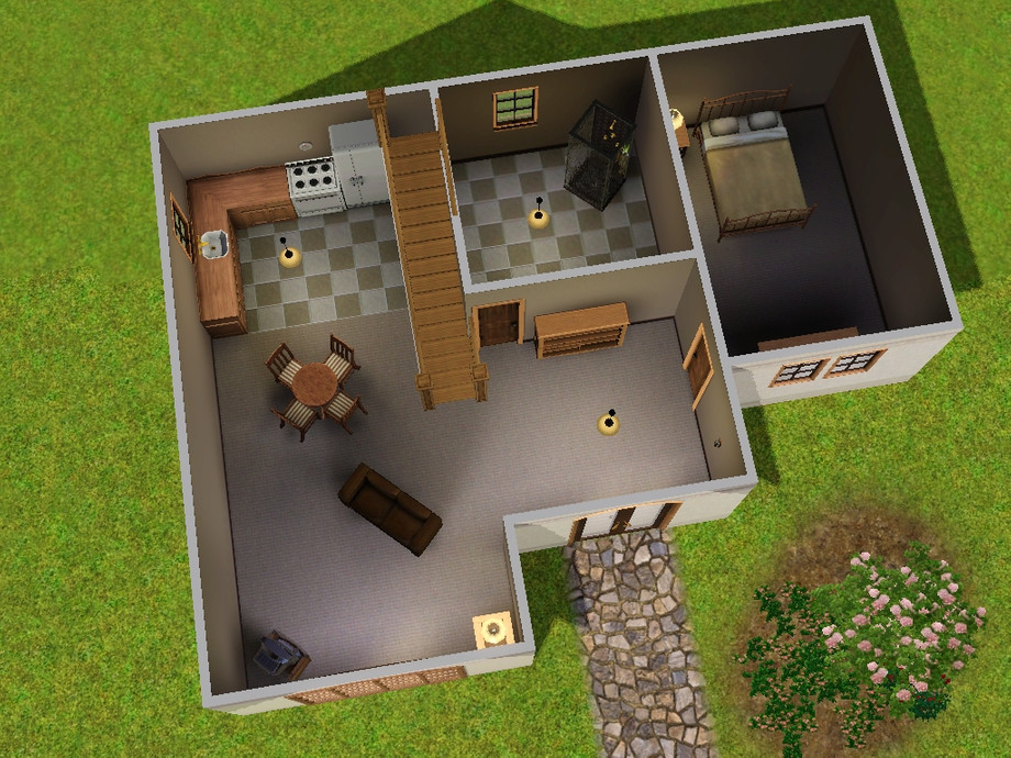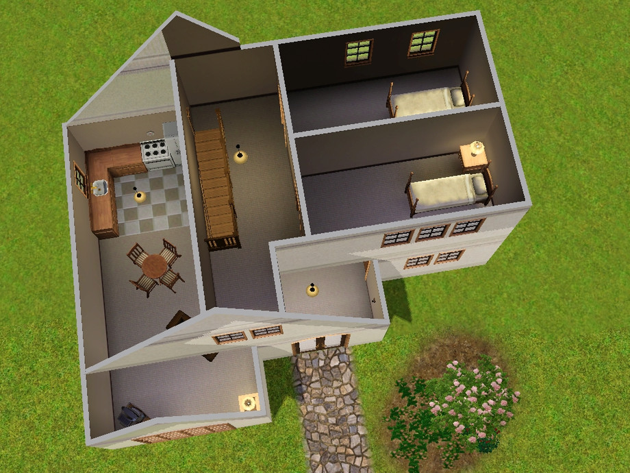 A 3 Bedroom starter home for your sim family. I has an Open Plan Living, Dining and Kitchen plus a Master Bedroom and a Bathroom on the 1st floor. Upstairs there are 2 x Single Bedrooms on this 30x20 lot.