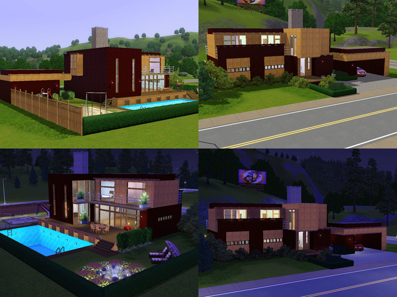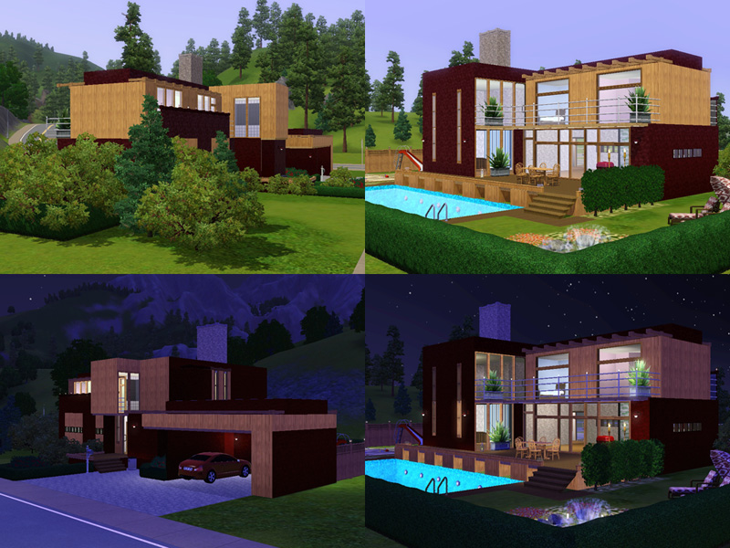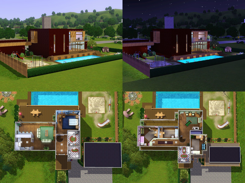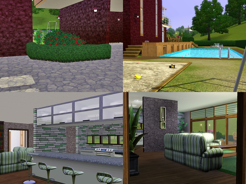 Modern and luxury family home, with all what your sims will enjoy. Entrance, small hall, open kitchen, living room, master-bedroom, 2 bathrooms. Upstairs, hall with play and relaxe area, 3 single bedrooms, bathroom and 2 balconies. Outside, terrace, large pool, nice garden with playground and a double carport. Fully furnished and decorated, by matomibotaki.