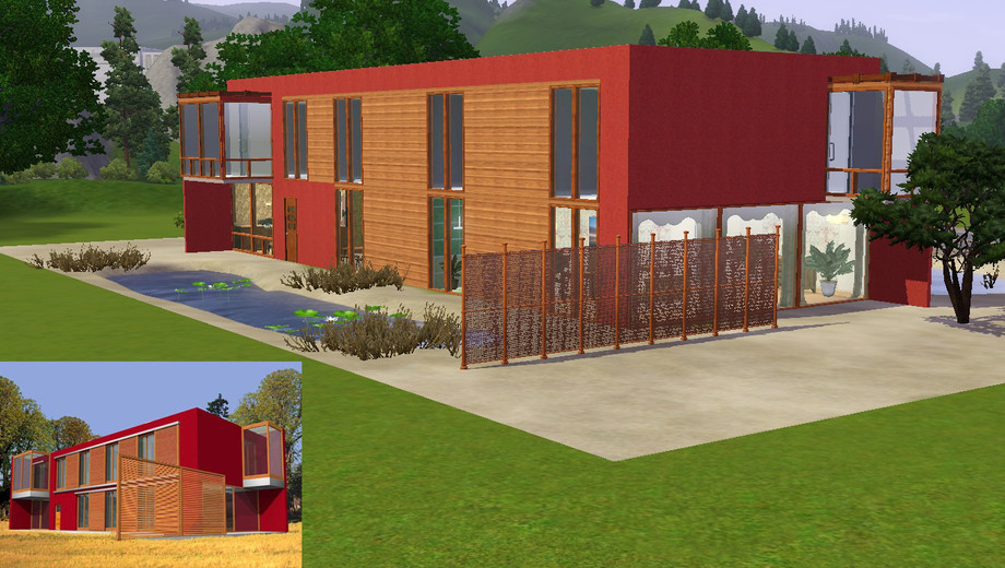 Desert Cube Lot is a modern house with a desert garden. It has several bedrooms as well as a bathroom, a kitchen an a living room.
