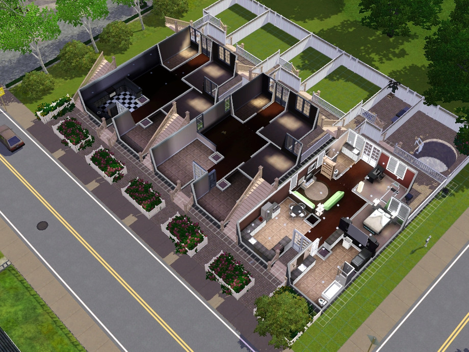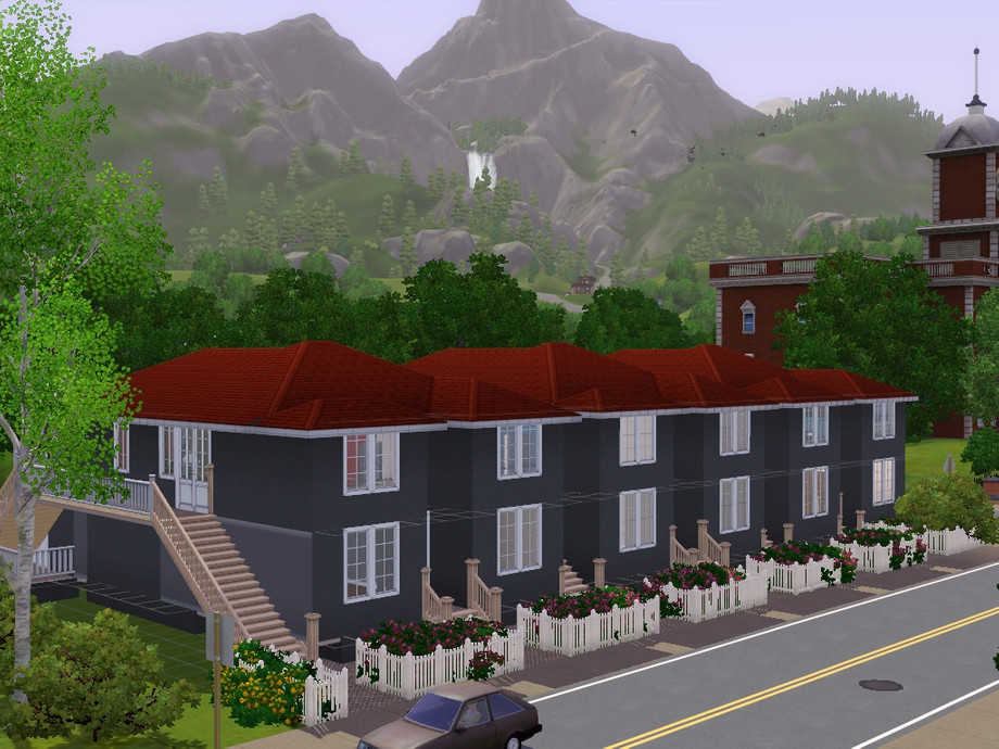 For single career-oriented Sims or starter families, this 6 unit building offers spaces with two bedrooms, two baths, a laundry room, kitchen and living room. Each space also provides a back porch and enclosed yard, a rare find in downtown lots! Space is partially furnished as I was previously using it for bachelor pads :)