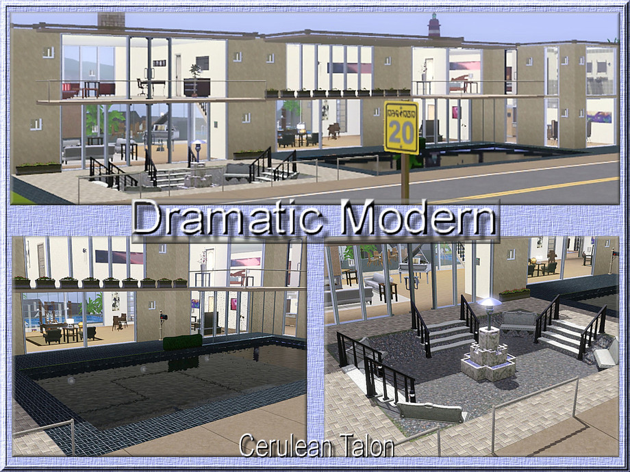 Sims 3 — Dramatic Modern by Cerulean Talon — Clean lines and elegant form that features an open floor plan, 2 stories, 3