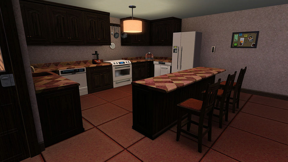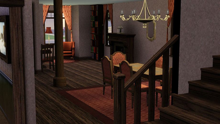 Got a big family in mind? Here's a lot to fill the needs of a large family. Eamon is a big brother lot to Teagan. The exterior has been redone, recolored, re-landscaped, etc. A basement was added and is currently a man cave and also has a bathroom. This house can have 4-5 bedrooms. One room is currently an exercise room but can easily be changed out for a bedroom. There's a nursery, boy room, girl room, and the master suite with a huge bath. Laundry is upstairs as well as another bathroom for the rest of the family to share. The first floor has an open floorplan with lots of space for family bonding. There is a living room area attached to a formal dining area. A study/den is off the entry. The kitchen has all the goodies a chef could want and it's open to the family room so family conversation doesn't have to be interrupted by walls. The yard has enough space for a garden, trampoline, pool, or whatever your sims desire. The interior and exterior are warm and rustic.