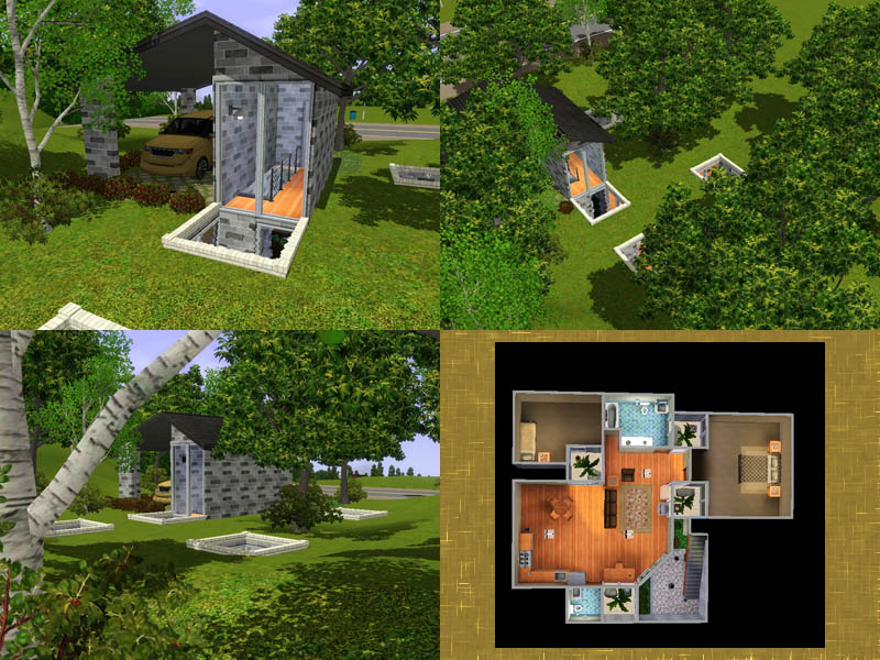 What could be more green than living in the ground itself? Earth Sheltered homes are some of the most efficient in the world, staying warm in the winter and cool in the summer. Daylight comes in through the pools, and the lot is filled with trees and bushes. Go down stairs, through the entryway, into the greatroom, there are two bedrooms and 1/2 baths for this starter.