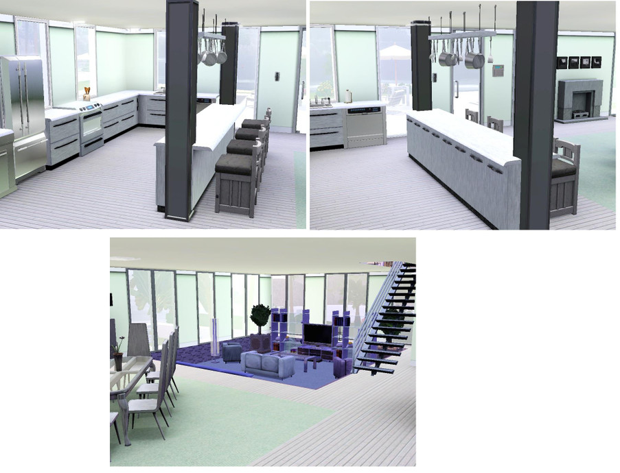 This house has 3 bedrooms 4 full baths and an open living area with a kitchen, diningroom and a sunken livingroom. With pale shades of grey,white and green its interior works well with the outdoor area.
