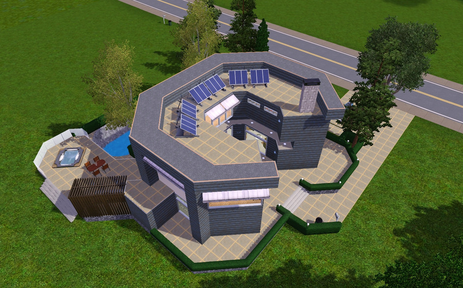 Green energy. This house is all about the environment. It was designed especially for the New Year 2011. Let's think about our environment and save energy... This lot has been tested thoroughly by Aurora Moonrise. The pool and the hot tub are heated... solar energy of course! Happy New Year!!!