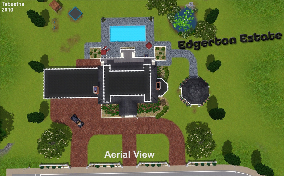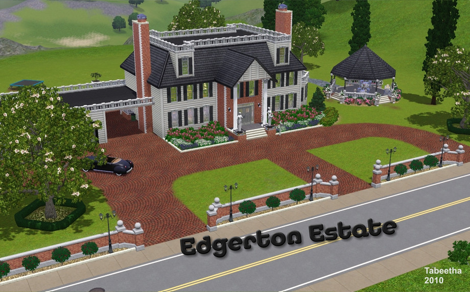 This is a large colonial style home, which has 3 bedrooms, 1 master suite, nursery, office, living room, dining room, kitchen, laundry room, 3 1/2 baths and 3 car garage. There is a cellar in the garage and a gazebo and pool outside. A great home for your wealthy sims to raise a family and entertain friends. I have all expansions and stuff packs.