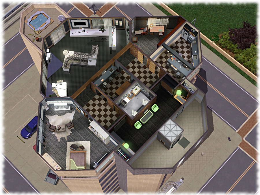 Why egoist may you ask? Egoist - because only man who very loves himself can appreciate this habitation at true value. Kitchen of true gourmet. Living-room of true society lion. And bedroom of... undoubtedly, true egoist can appreciate this bedroom :) Had I said already about the only one balcony enough big for private jacuzzi? :) All the rest for comfortable living you can find at the ground floor and basement: meeting-room, laundry, gym and pool. I hope your egoistic simmies will be happy to live there.