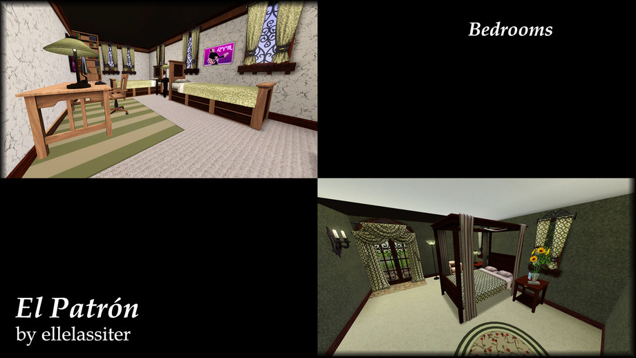 Inspired by the Hacienda Luxury Set, El Patron is the perfect home for Sims who long for the finer things in life. Fully furnished; features include three bedrooms, four baths, study, and in-home fitness center. Built with WA and HELS.