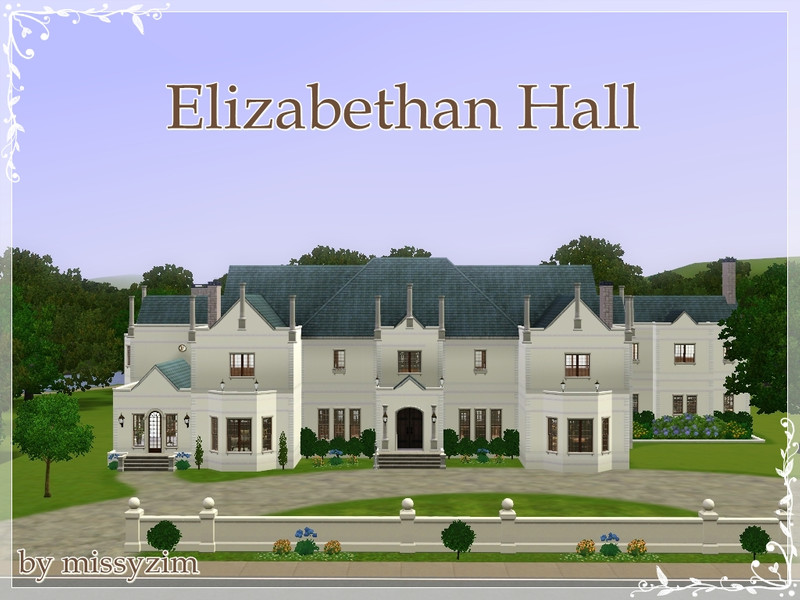 A luxurious country mansion built in the Elizabethan architectural style. On the first floor is a family room, his and her offices, 2 large living rooms, a music room, sun room, conservatory, dining room, half bathroom, laundry room and kitchen. On the second floor are 6 large bedrooms, one with a private bathroom, two large shared bathrooms and 2 small rooms which can be used for whatever you like. Please see the floor plans for details. Outside is a 3 stall detached garage, a long terrace in the back with a pool and a sunken garden. House has been play tested. Upstairs rooms are unfurnished and undecorated.