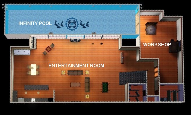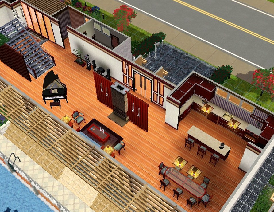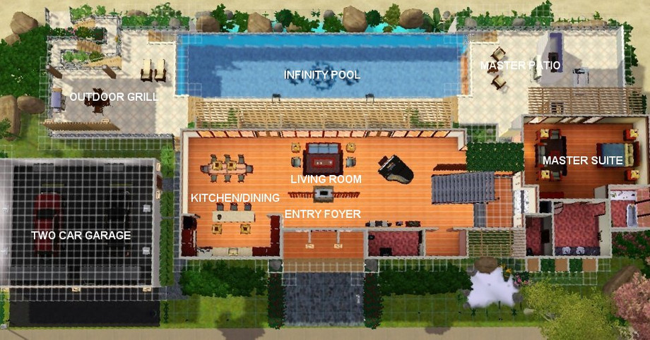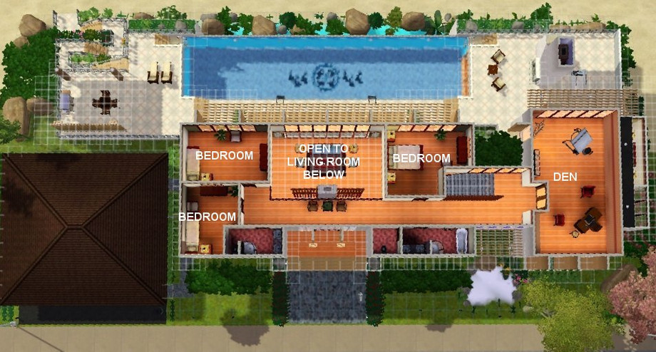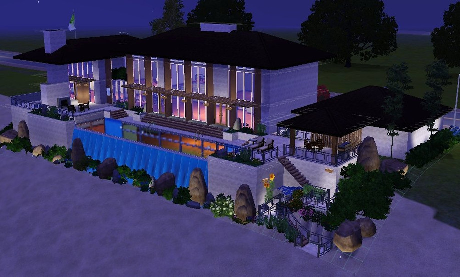 Perfect for that shallow hillside oceanview lot! Modern home with first floor MBR, 3 upstairs BR, 6 BA and 2-car garage. Full landscaping and fully furnished (expect pictures). Alot of little details make this a home to remember. Infinity style pool with open viewing to the giant basement entertainment room and a comfortable second floor den. Custom content includes SYL column, Newtico window, Gosik half fence, Blackest_digital_artist window and Lisa9999 grand piano (thanks!!!).
