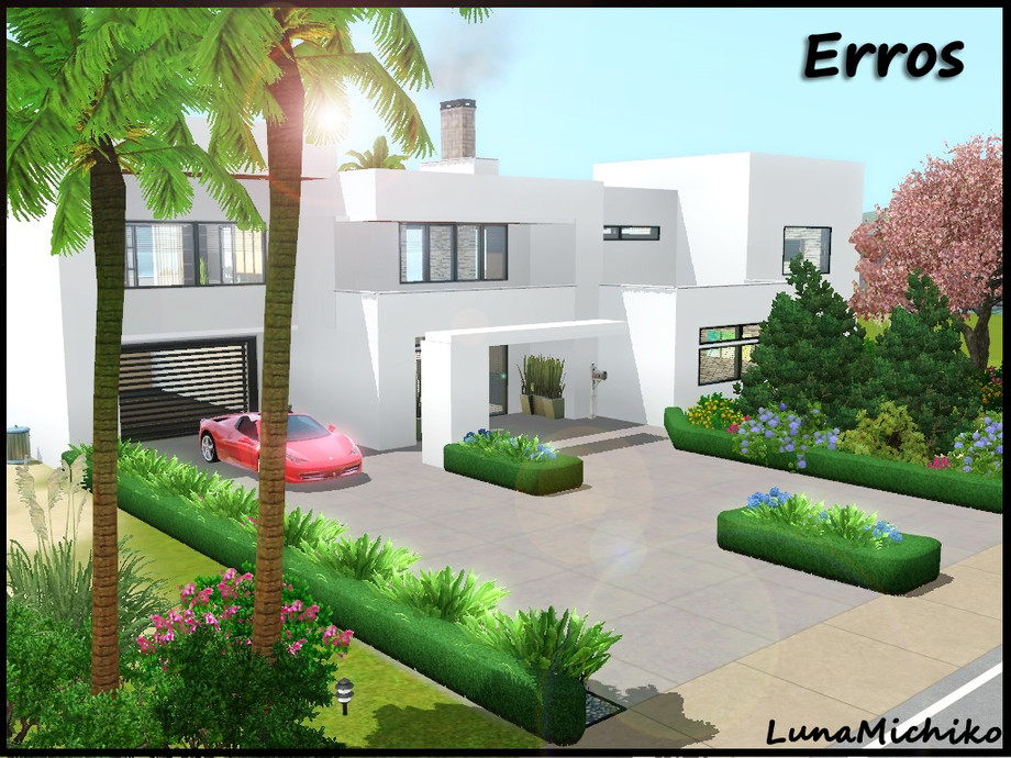 Erros: A white contemporary beach house gives a spectacular view of the surrounding area due to its meaning,"pleasant view". It gives massive sunlight into the house.This house is perfect for your bachelor simmies!