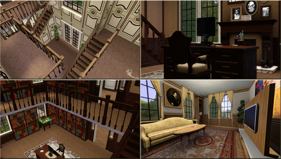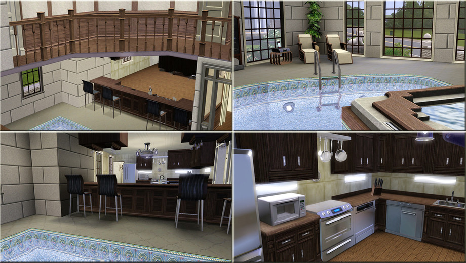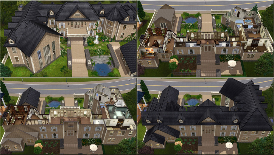 This 3 bedroom, 5 and 1/2 bath home is ready for your small family to move in and live in the lap of luxury. It features a multi -level library/study, nursery, outdoor entertaining area, stocked pond, main floor laundry, small garden, garage, and did I mention a pool side bar and hot tub?! Prepare to have some very spoiled sims on your hands!