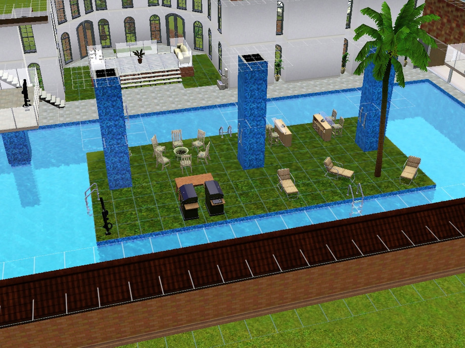 Pary central in disguise! Half of this grand mansion hides an enourmous pool, a buffet hall, dance areas and much more, and the other half contains spacious, modern living quaters. Includes 3 bedrooms to accomadate six Sims, and 3 full bathrooms and one half bathroom, and a 5-car garage. Fully furnished and decorated, this house is perfect for Sims who like to PARTY! I made it cheap so your Sims are ready to move in as soon as you begin!
