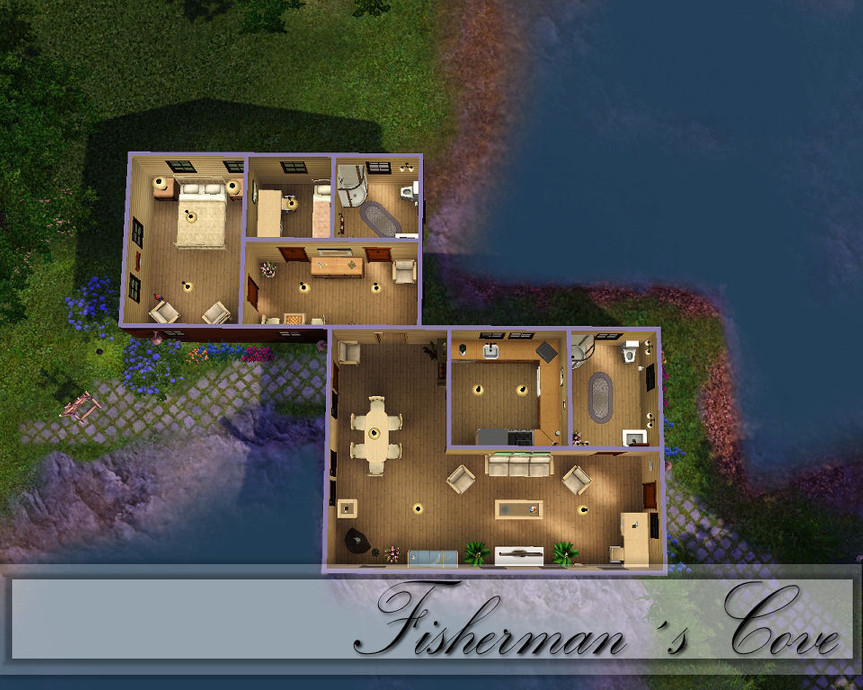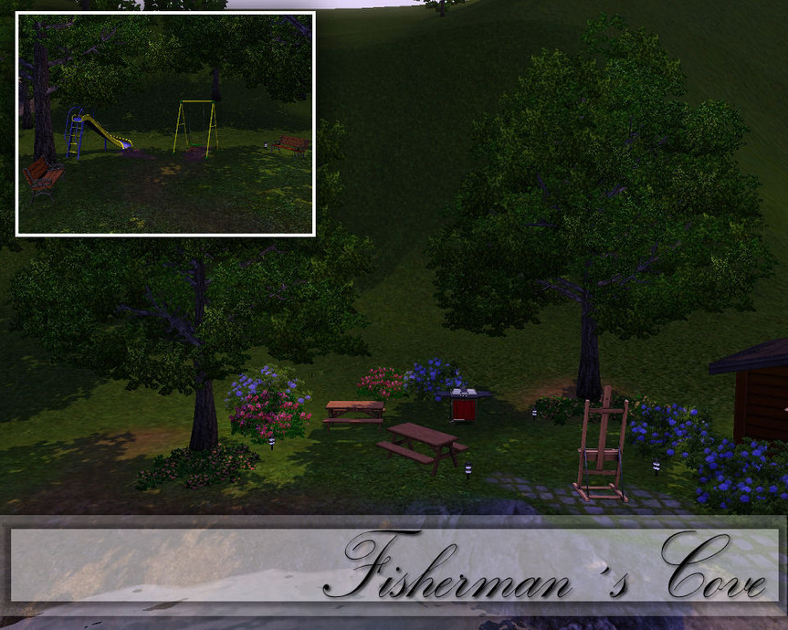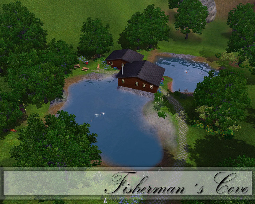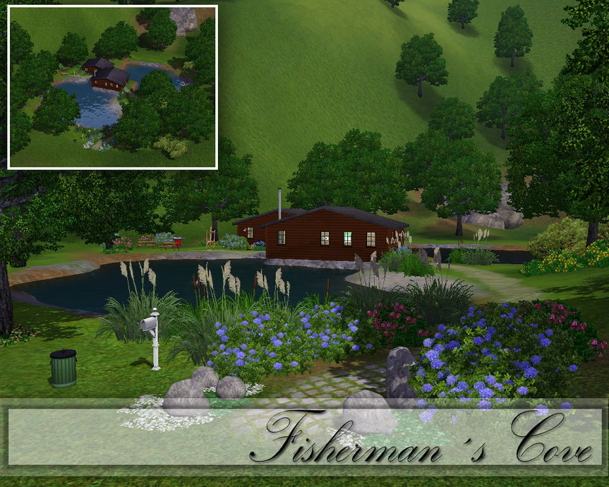 Located in the outskirts of town is this lot that used to be a public park before some other sim turned into a residential lot. Situated on the lake this house has 2 bedrooms and 2 baths, a big living and diningroom and a smaller area for games outside the bedrooms. In the garden is a BBQ area and a playgarden for the kids. The lot is big and the rest of the ground can be built on. Maybe a smaller house, you decide. Enjoy!