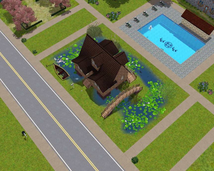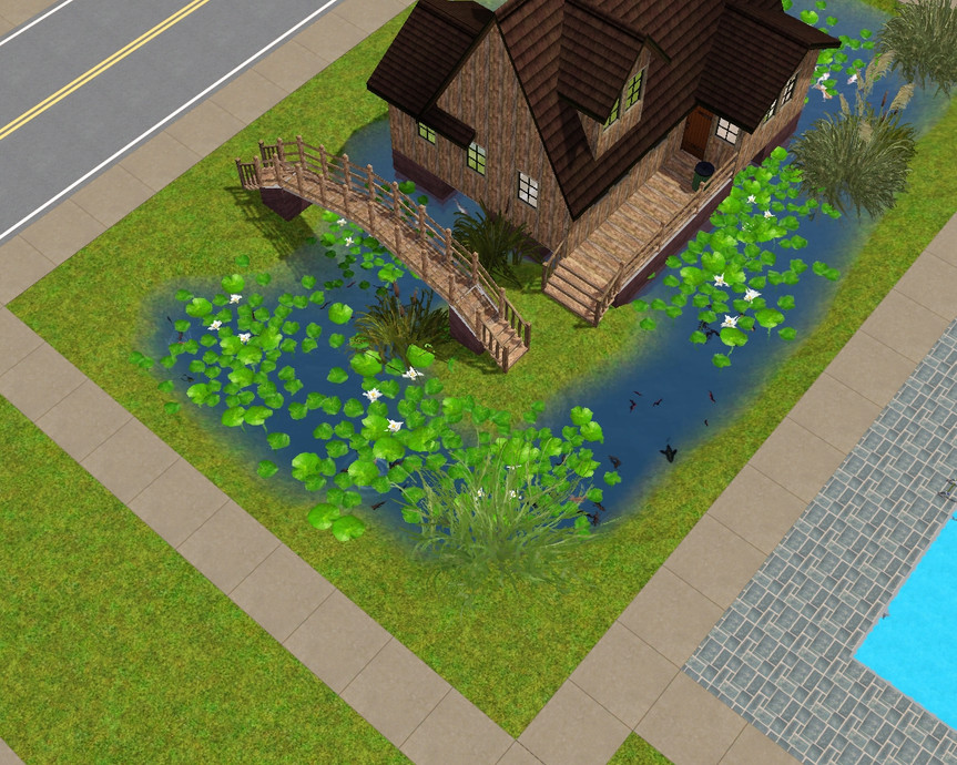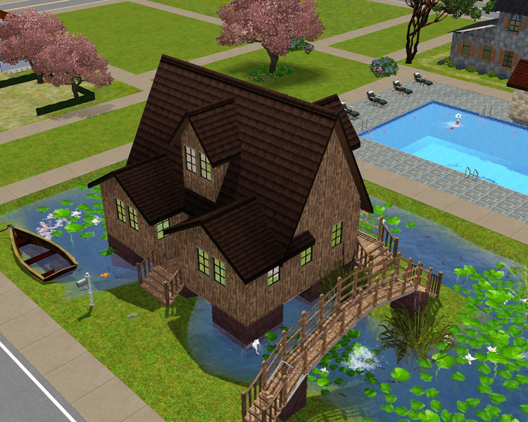 This house is a fisherman's dream, surrounded by water and plentiful fish from all over the world! This shack has only one bedroom and and bathroom and a kitchen, living area filled with all the basics needed for a sim starting out in the world.