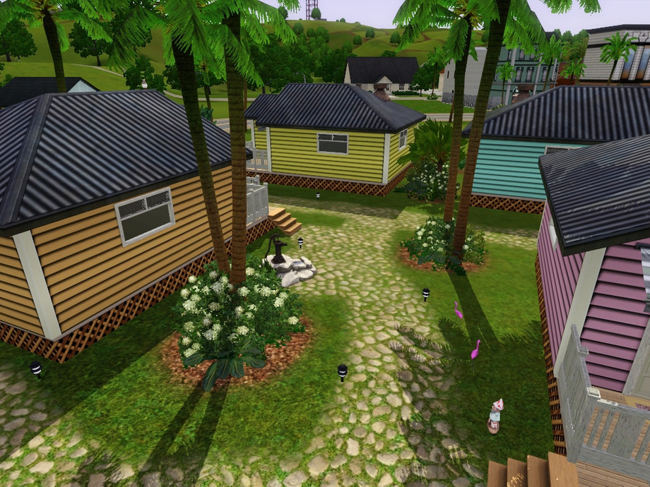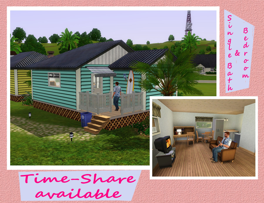 A time-share has never been so affordable! Set near the beach, Flamingo Cabins is the perfect place to spend a vacation, honeymoon or long-term stay. The blue cabin has just opened up, ready for your sims to move in and get established! Each cabin features one small bedroom and bathroom, kitchenette and small living space.