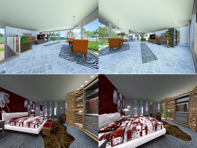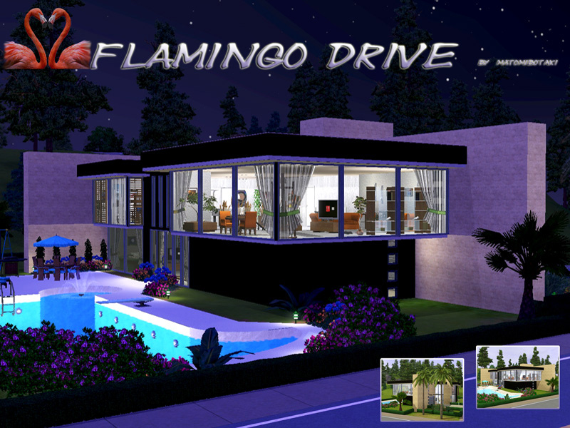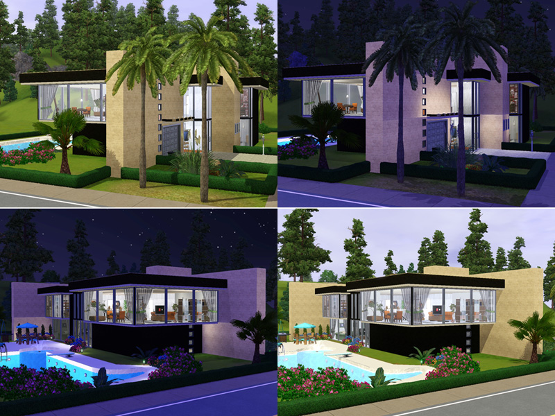 Modern, luxury, cube-style sims 3 house with fancy details. Stone. steel and glass in perfect harmony. Elegant entrance with gallery, kitchen with breakfast-area, dining-area in the livingroom and chimney, bath. Upstairs, large hall with TV-, Fitness- and Play-area, master-bedroom, 2 single bedrooms, bath. Outside, pool with fountain, whirle pool, terrace, garden and garage. Fully furnished and decorated, by matomibotaki.