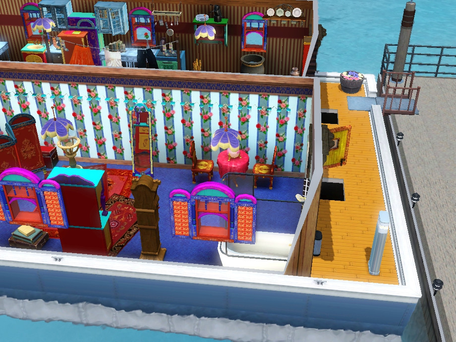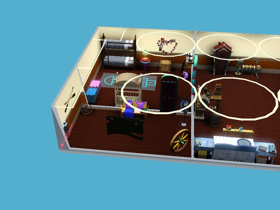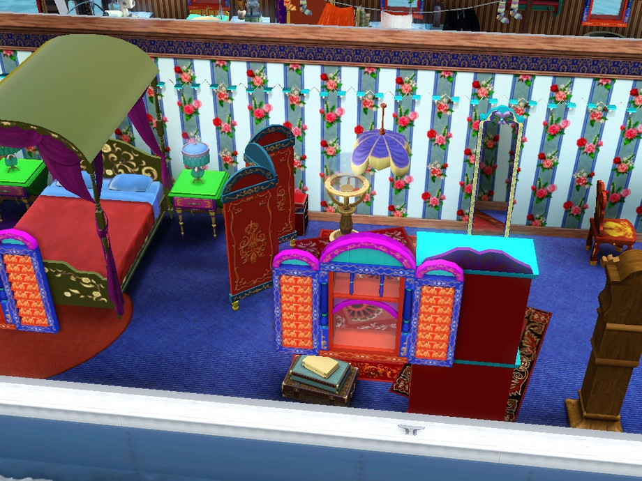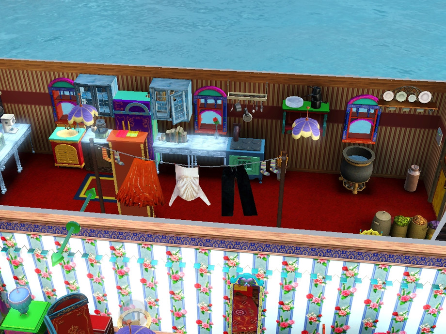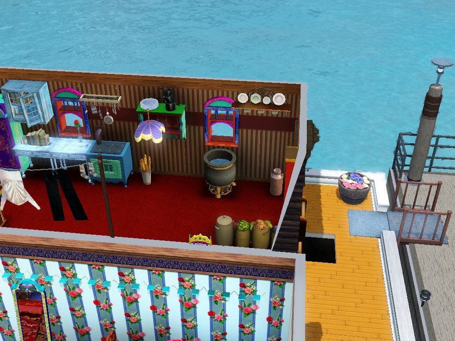 Now your family can live an authentic Traveller life in an honest to goodness double vardo. Vardo is the Traveller word for wagon. One part is kitchen, another is master bedroom, whil below houses living room, children's room, and activity area. Perfect for a family of 4- 5 sims. Special thanks to ShinoKCR & Cyclonesue for making such lovely Traveller items.