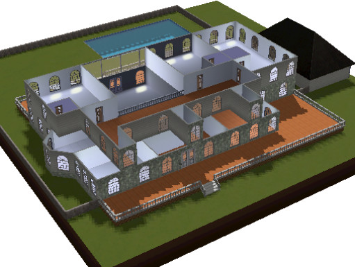 5 bedrooms: Master downstairs, nursery downstairs, bedrooms upstairs each with private bathroom. Master also has private bath. Includes Great Room, Kitchen, Dining Room, laundry room, study, and garage. Also has swimming pool in the back yard. This is UNFURNISHED. Please check back for updated furnished version. All custom content used from The Sims Resource. Please do not re-upload and claim as your own.