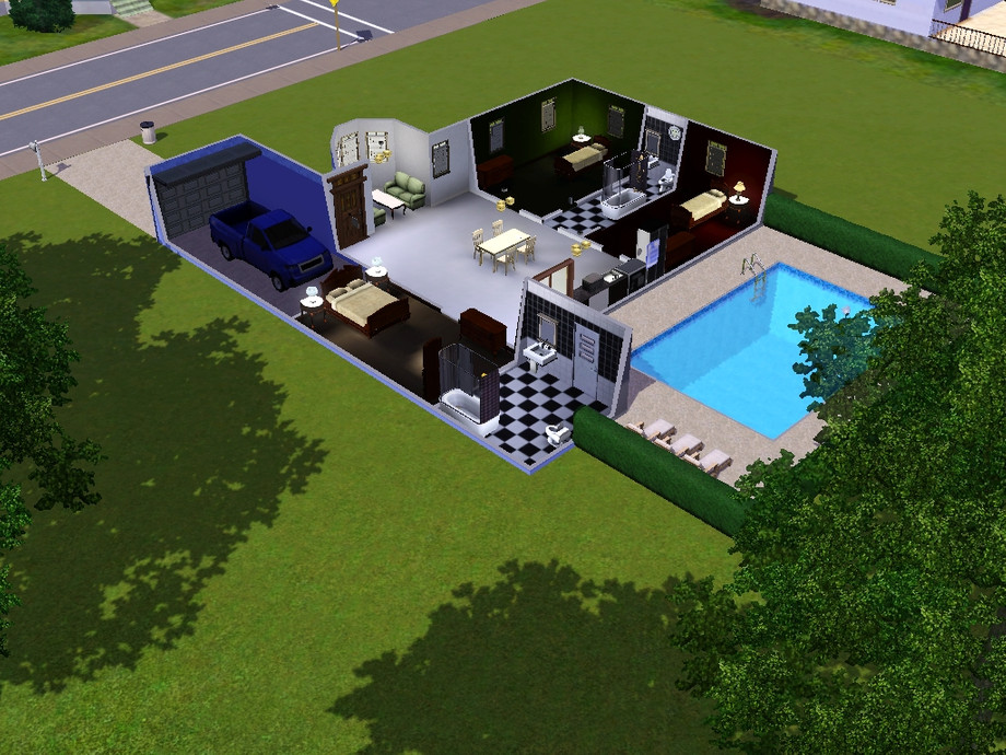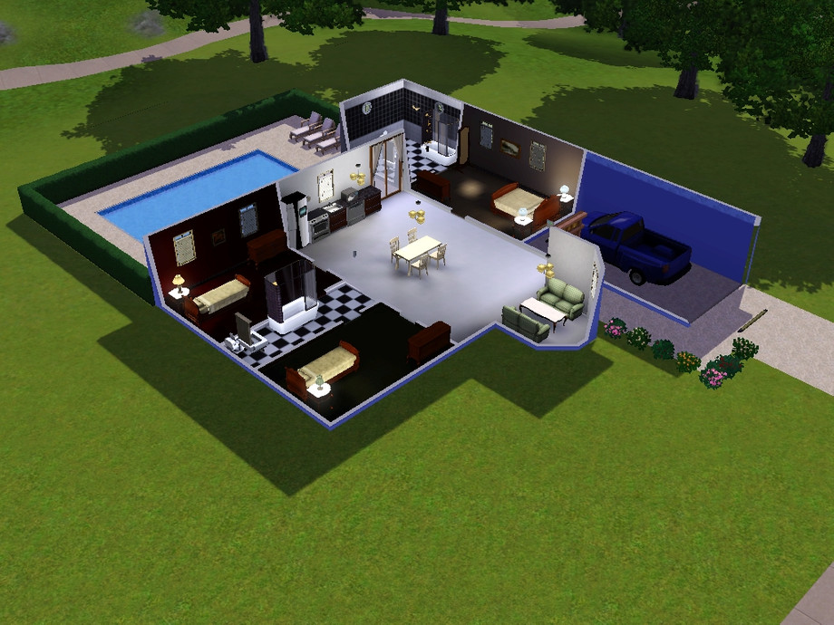 This home is based on the many beautiful villas you see whilst driving around the state of Florida. Stats: Furnished $58,809. Unfurnished $40,556. 3 bedrooms. 2 bathrooms. Kitchen/lounge area. Swimming pool. 1 car garage. 1 car driveway. Large yard for expansion and/or objects. 40x40 land plot. The car in these pictures is mine from the game and is not included when you buy the house.