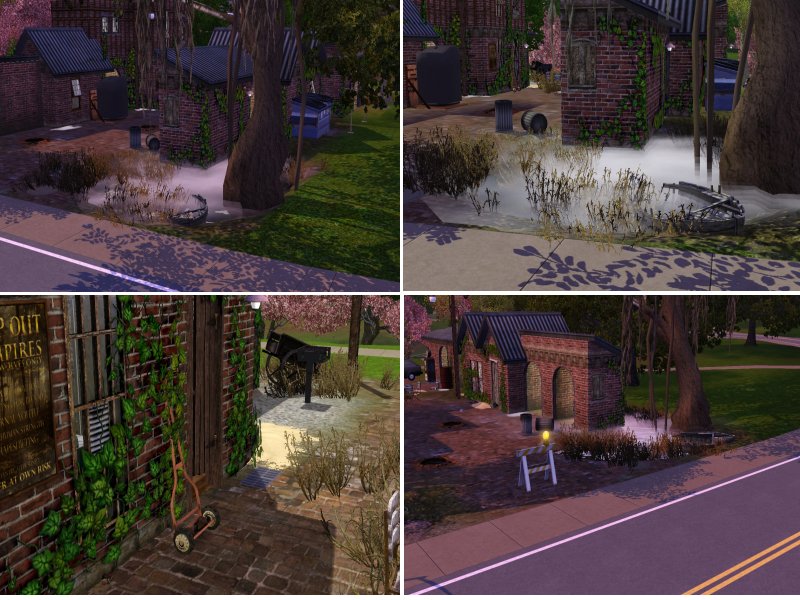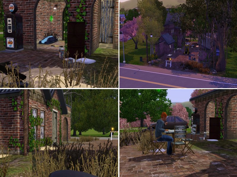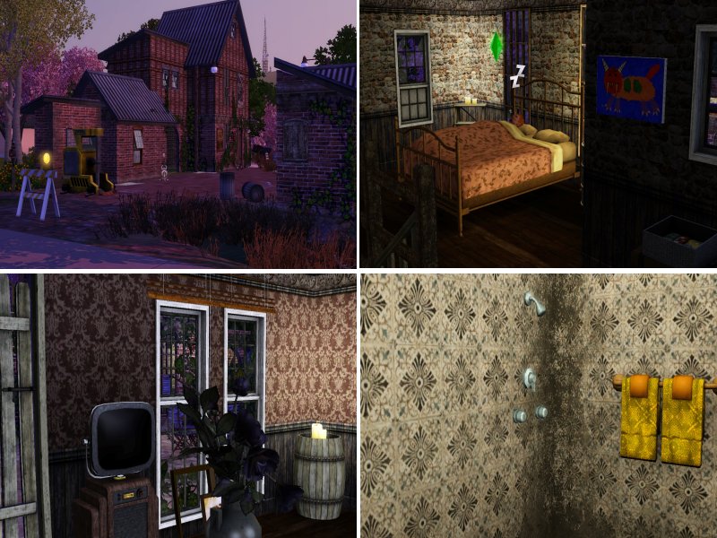 Every city has a street like this, forgotten dirty but with a strange charm. Different small allee's with gateway's leads to another corner of the street. Do your sims like to renovate? than this is a challenge for them,my sim had the time of his life starting in his sleepingbag he added a bedroom later on a kitchen and livingroom. a shame his girlfriend didn't like to move in for her such a creepy looking house, so he decide with pain in his heart to move to a surbunhouse, but for how long? Will he miss the freedom ? whe never know.