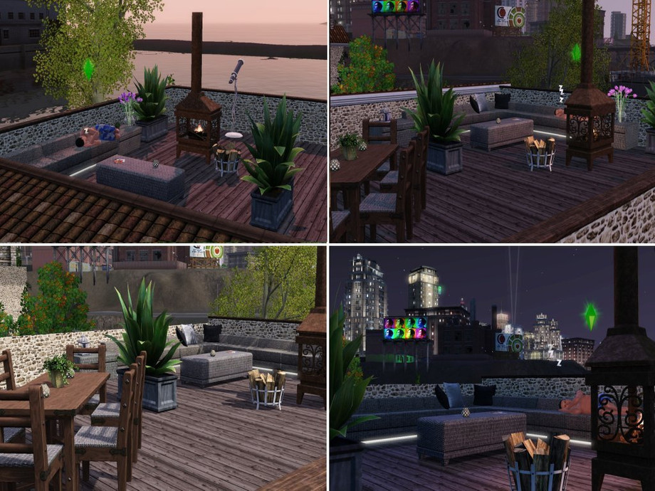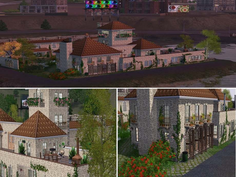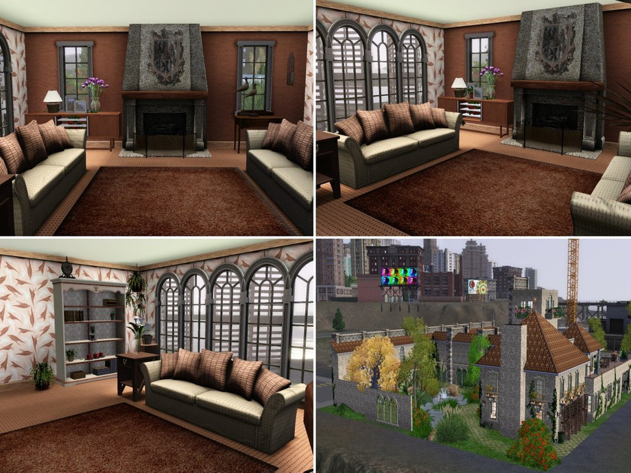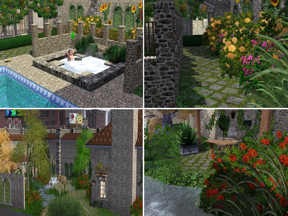 Another restored building with an impressive front, your sims will have total privacy and the greatest vieuw on the city from the roofgarden. Two seperate gardens one with a pool the other with a pond both with enough place to play sit or eat outside. The tower is 3 story's high the rooms can be used for different hobby's if you like. On the mainfloor you find the masterbedroom with own bathroom, kitchen with diningcorner,livingroom with fireplace and another room mentioned as study or another bedroom.