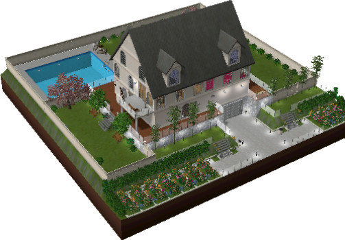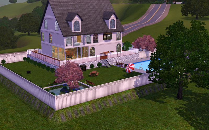 Garden Valley - 647 Farmer Valley Road, Riverview. This here is now my 2nd house that I've built to share with everyone. It consists of 2 bedrooms, 3 bathrooms, 1 car garage, pool, garden sitting area, pond, living room, kitchen/dining room, and a rec room in the basement. The big bathroom on the top floor has a big window over looking the wonderful pond. Beautiful flowers all over, trees and bushes. I hope you all enjoy my newest house and your feedback is much appreciated. Thank you and happy downloading!