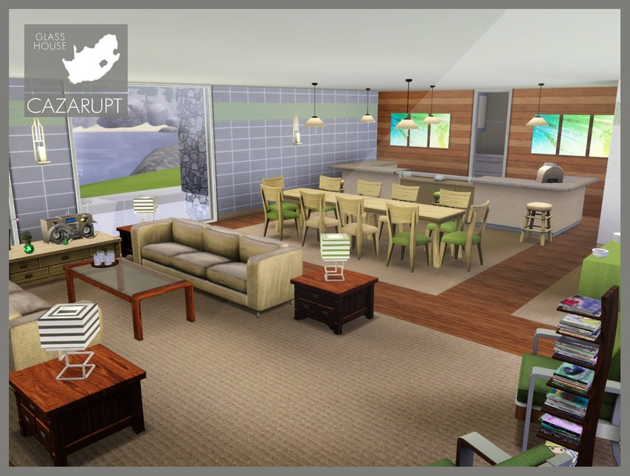 This luxurious open plan home is perfect for partying. Open Plan Lounge/Dining, seperate Kitchen, 2nd Lounge, Split Level Entrance Atrium, Double Garage, Gym, 4 En-Suite Bedrooms, 2 seperate Bathrooms. Outside is 2 Parking Spaces, Pool and Firepit. By cazarupt for TSR.