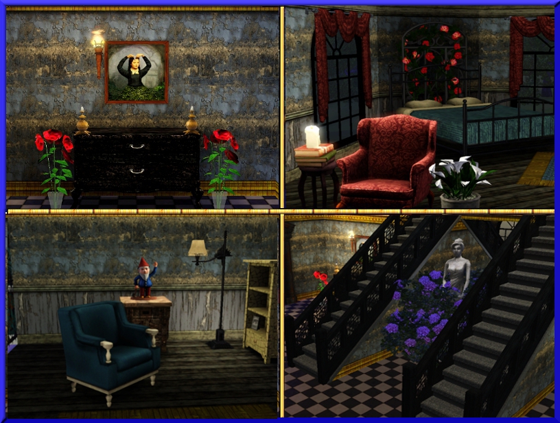 This Gothic Mansion has been around a long time and has seen many families come and go. It owes it's eclectic atmosphere to it's unusual occupants who once inhabited it's spacious rooms. From witches, to ghosts, to a family of vampires and lastly a bunch of Emo kids, this mansion has seen it's share of characters and it's decor reflects that, as each family has left something of their own behind for the next.
