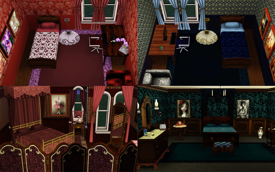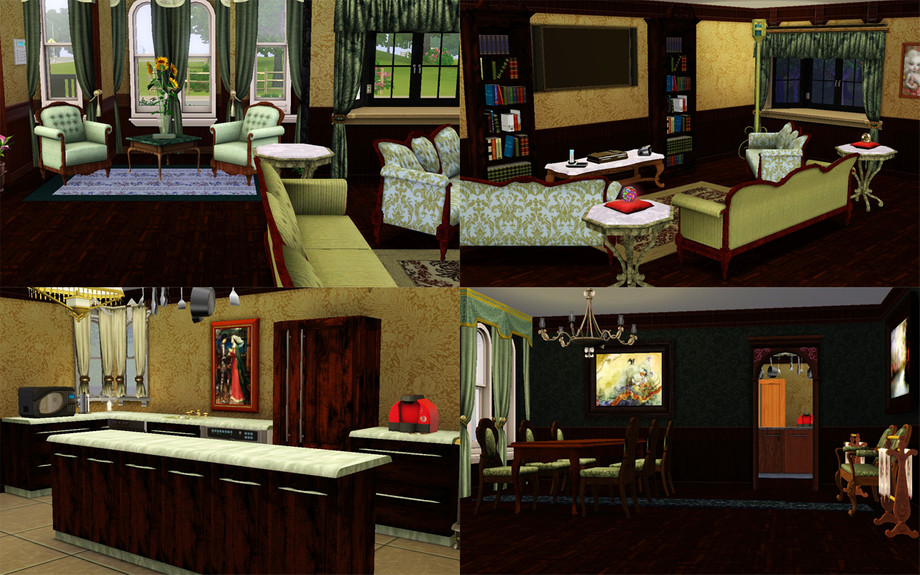 4 bedrooms. 5 bathrooms. The house might look a bit different on the interior than it does in these shots because I had to change some things to get the size of this lot down, but it should generally look the same. I used some paintings I got from simsartgallery.com.