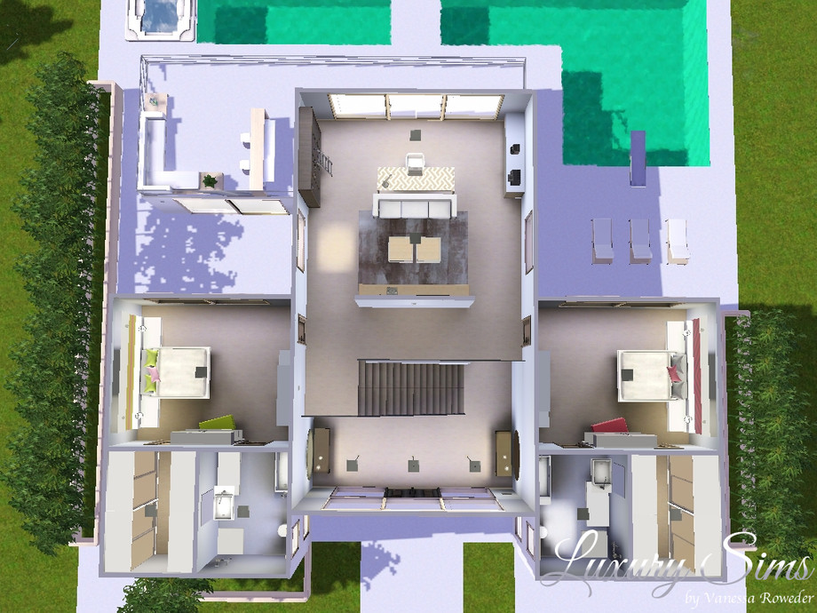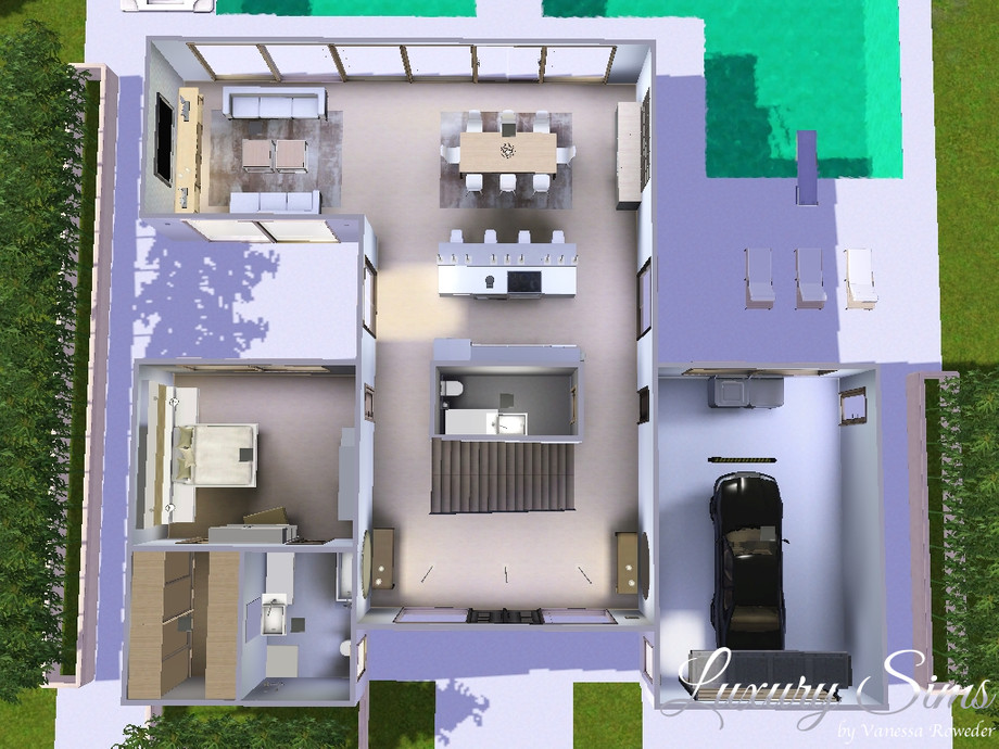 Grace is a modern house with 3 bedrooms, 3 closets, 3 bathrooms, 1 half bath, kitchen, living room and dining, room TV, lounge, office, pool, hydro and 1 car garage