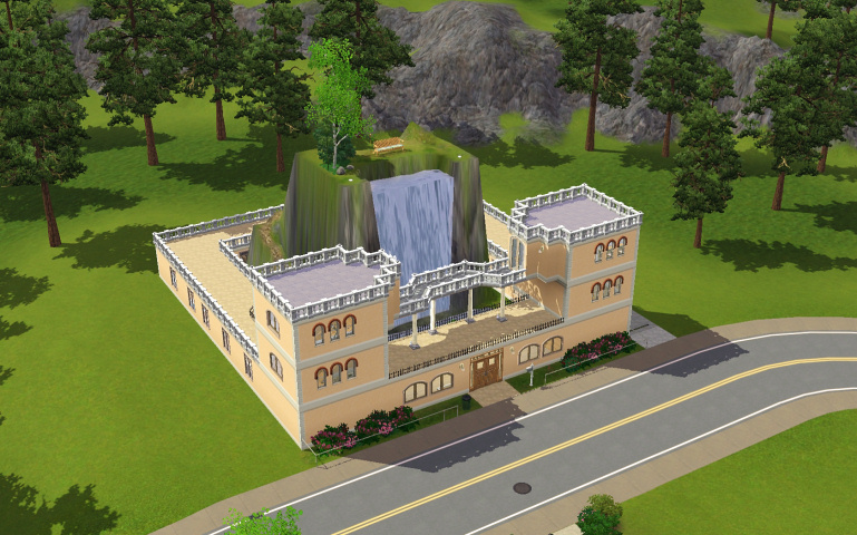 A perfect accommodation for nature-loving sims who can't be bothered going to a park, this spacious and fully-furnished house is built around a mountain with a small waterfall, so they can enjoy nice views in the privacy of their own home.