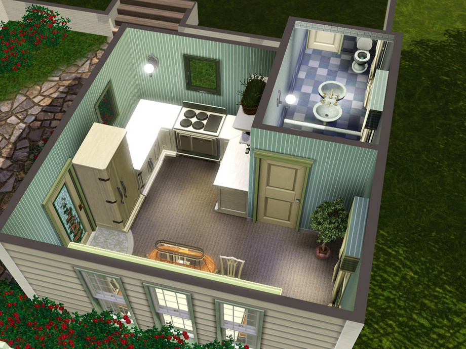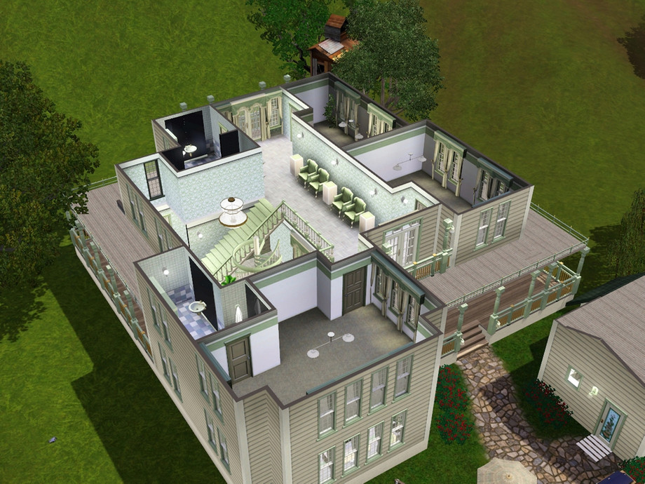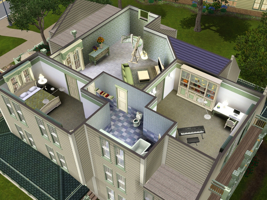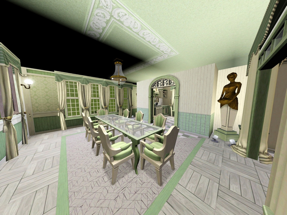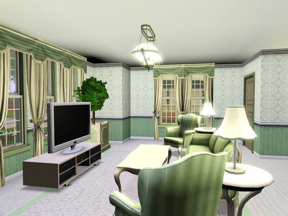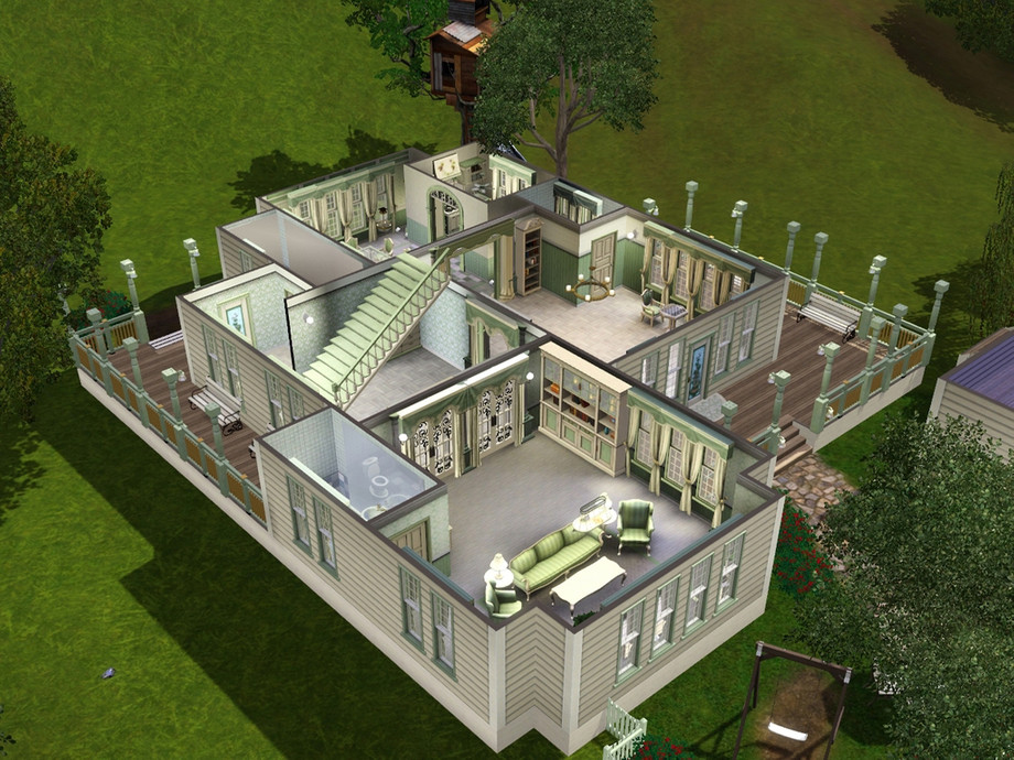 Typical american house. Nothing special, just a cottage. Interior was made using greenish colors and dull patterns, to make it look like melancholical.