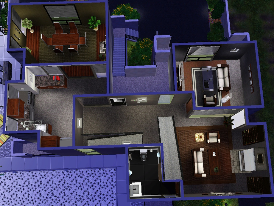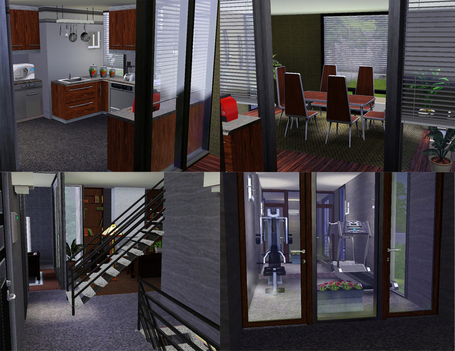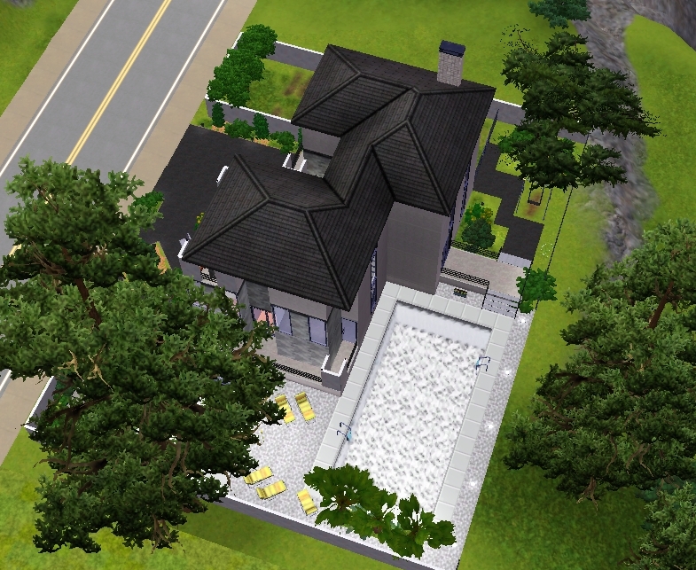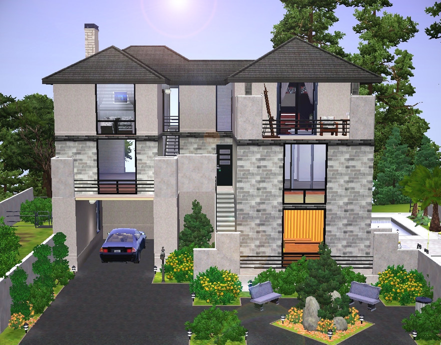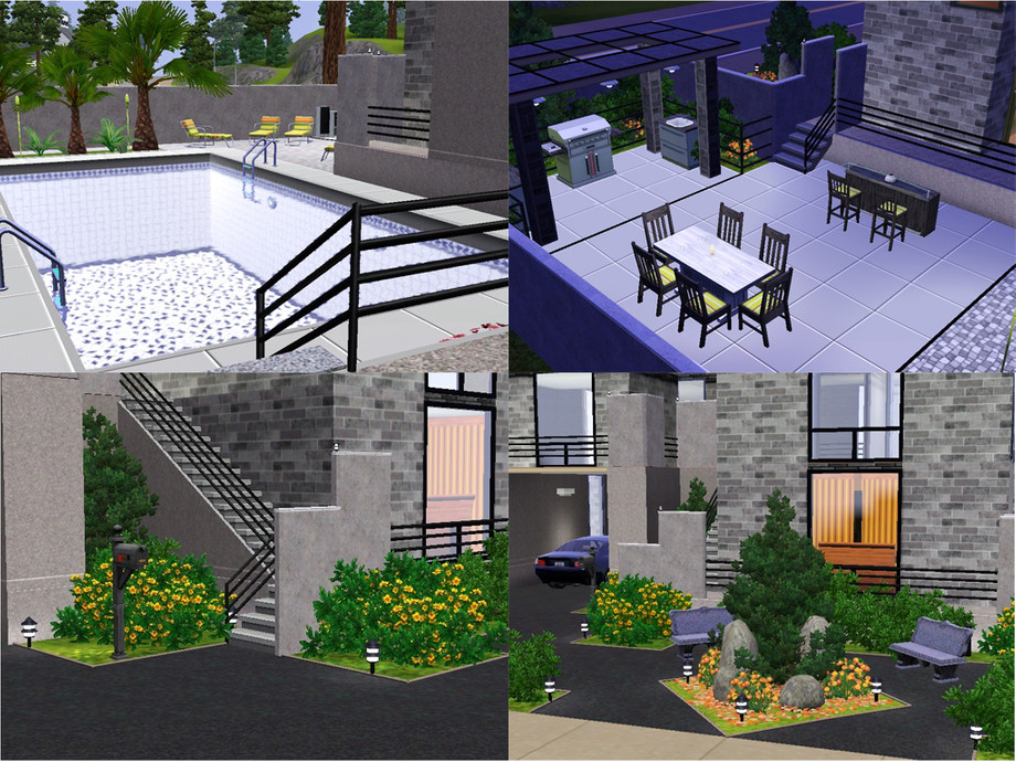A modern styled house with 3 bedrooms, 2 1/2 bathrooms, a kitchen, a dining room, 2 living rooms, an office, a little gym, an area for gardening and an out door party area with a big swimming pool.