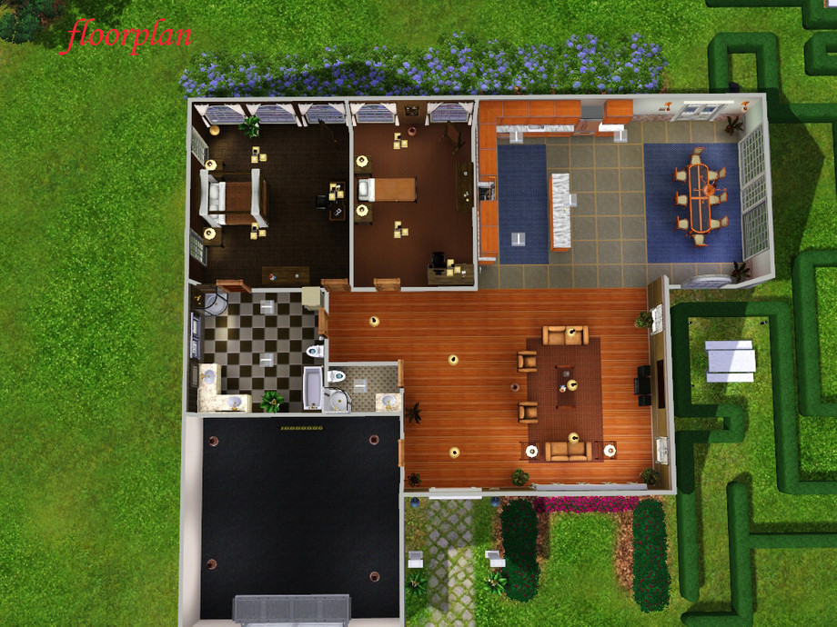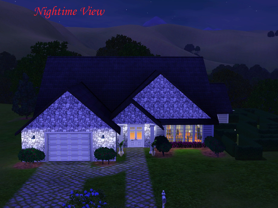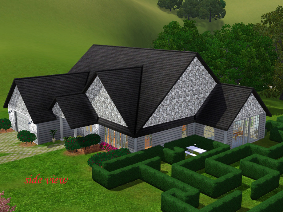 This great house has 2 bedroom, 2 baths, a beautiful maze outside for you sims to lose their stress away in. It also has a one car garage and beautiful landscaping.