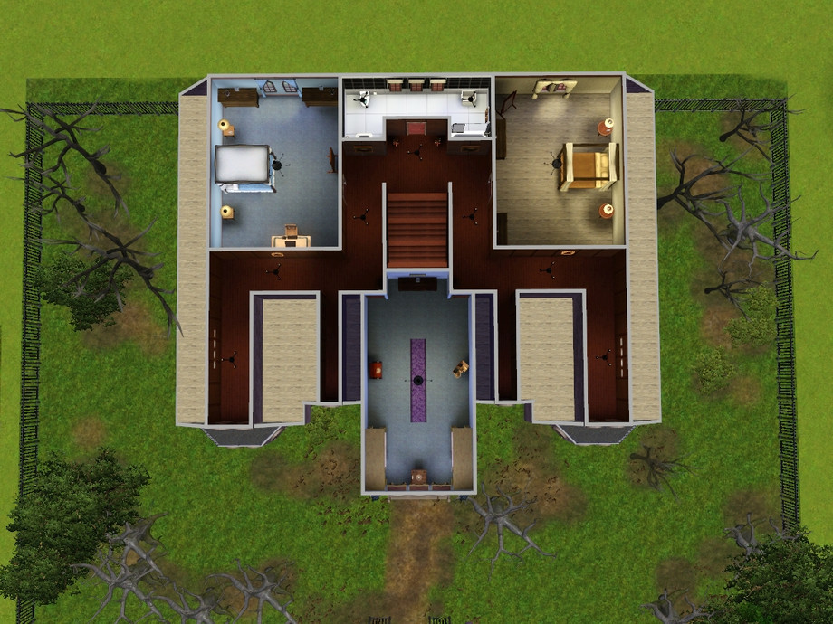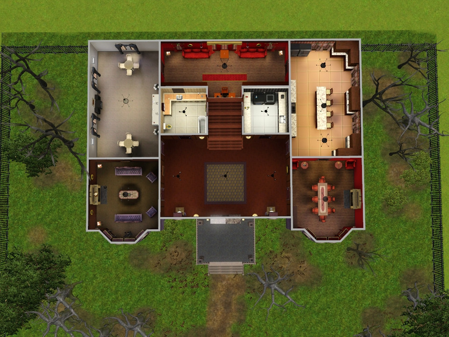 A spooky home for your Sims with 3 bedrooms and 2 bathrooms all fully decorated. Plenty of other rooms too and loads of space. A great house for scarey Halloween nights with it's own party room aswell :).