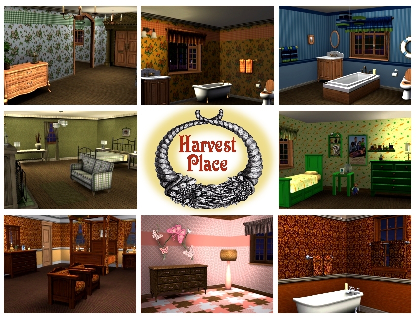 A quaint and comfy upmarket home. If you like a more traditional house for your Sims, Harvest Place is the home for you. Pleasing checks, stripes and floral designs abound in this house :)