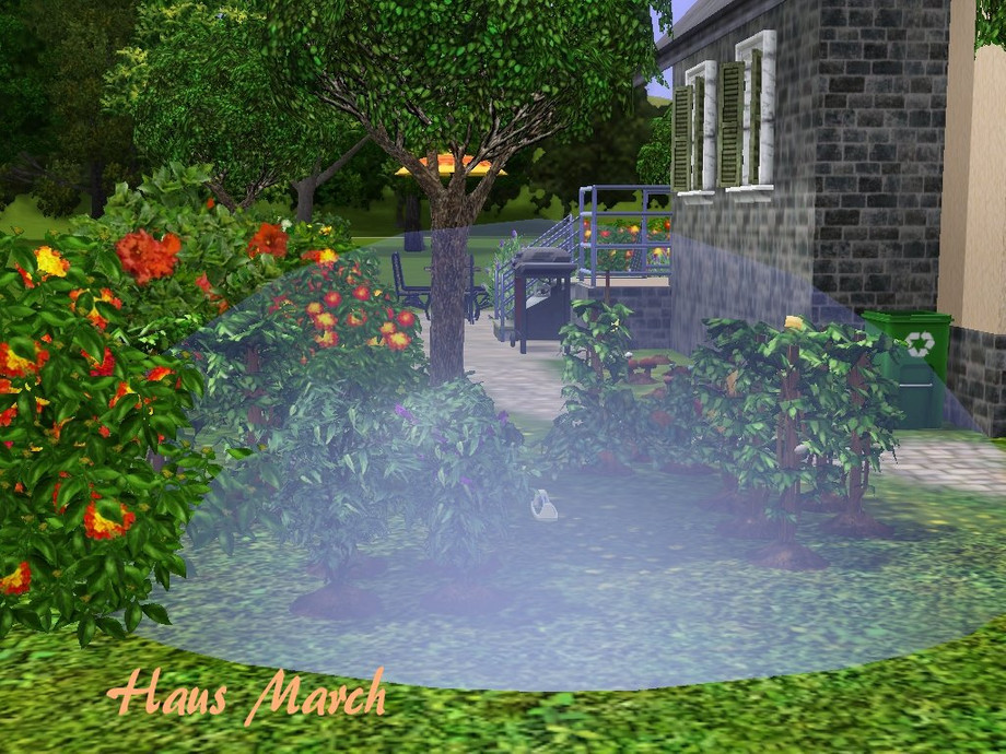 Outside in the garden among the plants and bushes also perfect veggie and fruit. and also space for