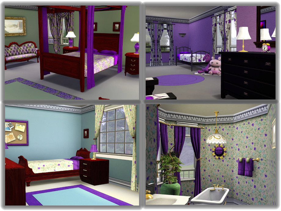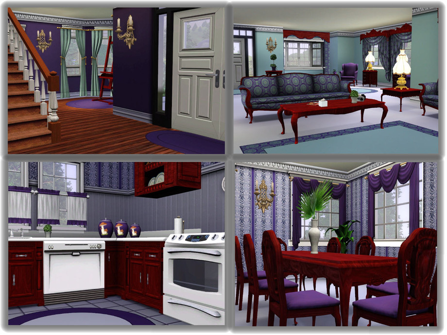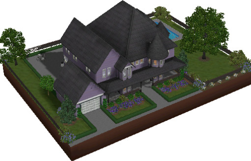Presenting another lovely Victorian for your Sims neighborhood. This colorful home is only for the bold who love the painted ladies of the past. The beautifully landscaped grounds offer a pool, plenty of dining area and an attached garage. The interior is decorated in shades of lilac and teal green. Downstairs has a parlor/media room, an office for skill building, a full bath, a painting nook plus a kitchen with an adjacent formal dining room. The upstairs has a large area for reading and painting plus three bedrooms with adjoining baths. There is also a balcony for late night star gazing. This grand home is suitable for four to six Sims.