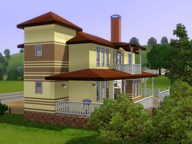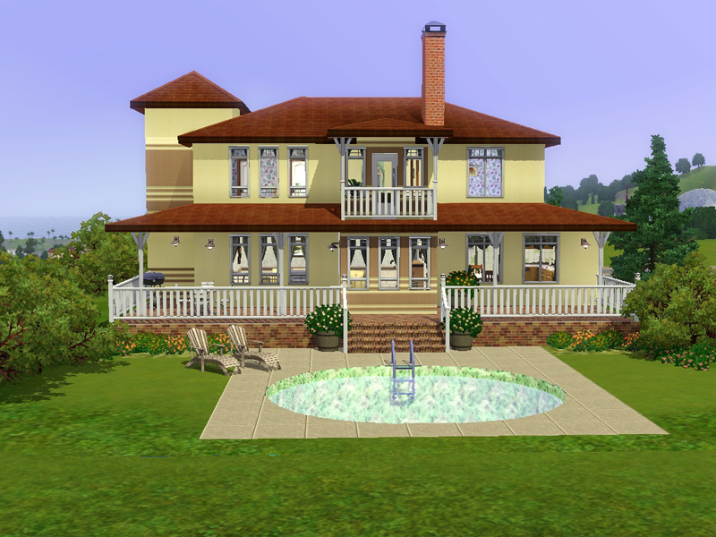 Cute house for sims3.Entrance, kitchen with dinning-area, livingroom with chimney and PC- and reading-corner, bathroom. Upstairs 1 dobble and 3 single bedrooms, bathroom, balcony. Outside large terrace, garden with pool and carport. Fully furnished and decorated. Enjoy