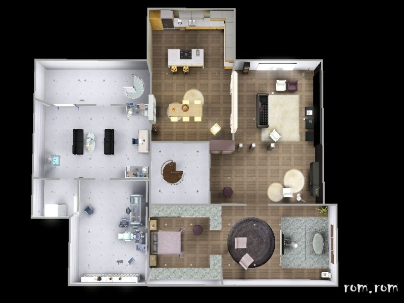 It seems to be an old abandoned house...from the outside..well, and also from the inside, because the main part of the house is in the basement. There's a spacious bedroom, combined with a bathroom, a modern living room, a kitchen in bright colors and (!!) a great laboratory complex for various purposes. It'll be a great accommodation for a scientist, who wants to live unnoticed (for some reason), but doesn't want to sacrifice his convenience and comfort.