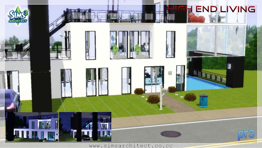 A house which includes all the items from The Sims 3 High End Loft stuff..Good for 3 persons...Enjoy it !!!