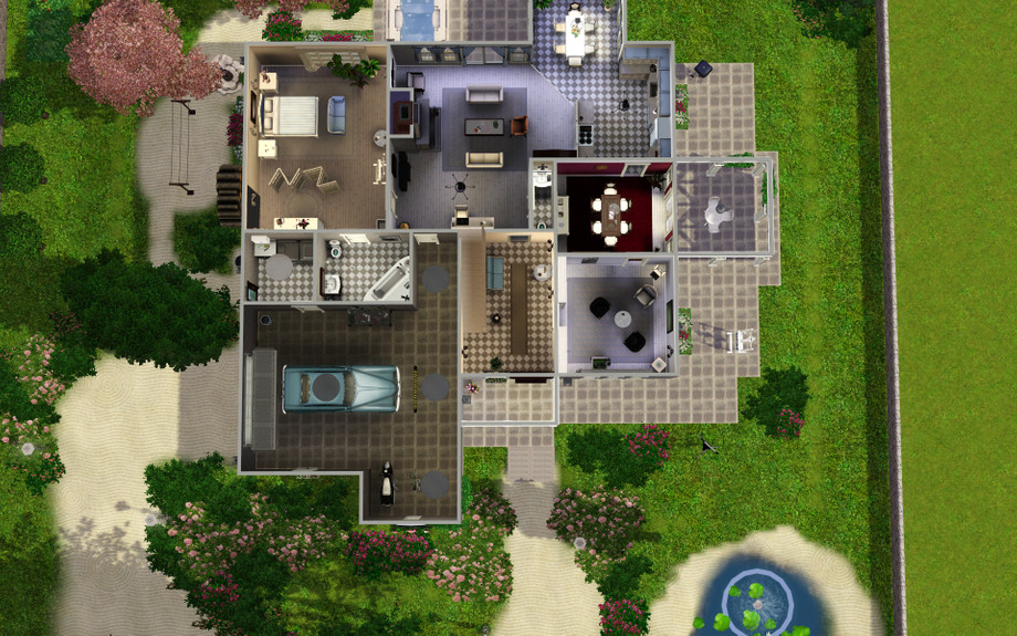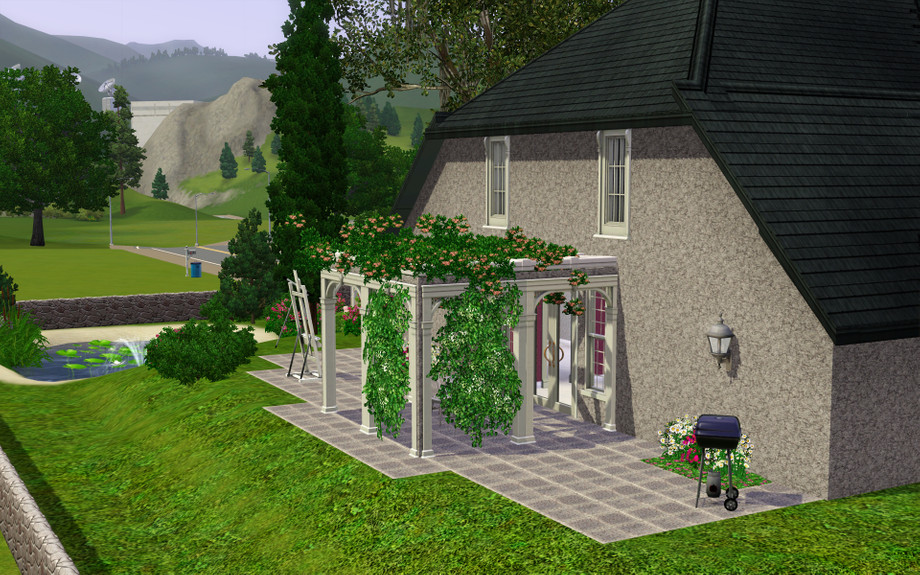 A tranquil cottage built on a hill. Suitable for a larger family, with a fully furnished nursery, spacious kitchen and a well equipped laundry room, as well as a kitchen garden. The garage offers the man of the house a hiding place when the kids are too noisy. Let you sim families enjoy their lives in this beautiful home!