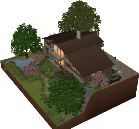 A modern home with colorful decor, located on a steep hillside. Fully furnished and decorated. Extensive plant life and trees, with a small pond, paths, and 2 car parking space. 2 floors, 3 bed, 2 bath, living, kitchen/dining.
