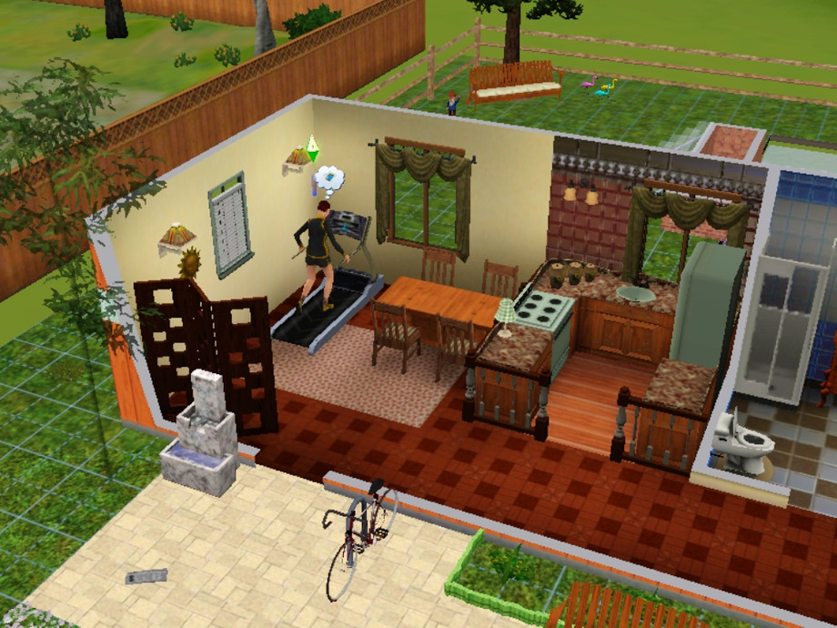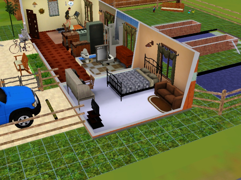 This home, made perfect for sims who love the "''hot-climate look"'' boasts red tile floors, with large windows to let in all the sunlight possible. It is beautifully furnished with all the best items, and both the back and front gardens are landscaped, and boast a pool with a central deck, and ample parking space for one car.